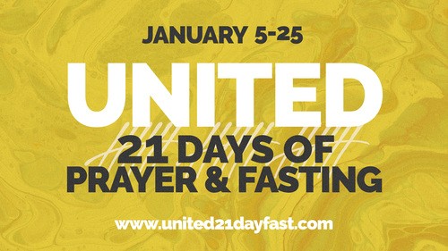 As we fast and pray together, we trust God to stir our hearts and work in and through us as we seek His Kingdom. CLICK HERE for more info about the United 21 Day Fast TODAY!